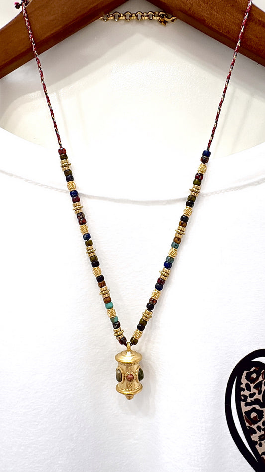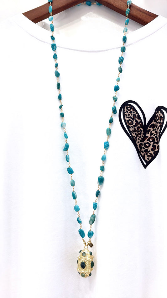 Sautoir Amulette Amazonite et Turquoise Africaine