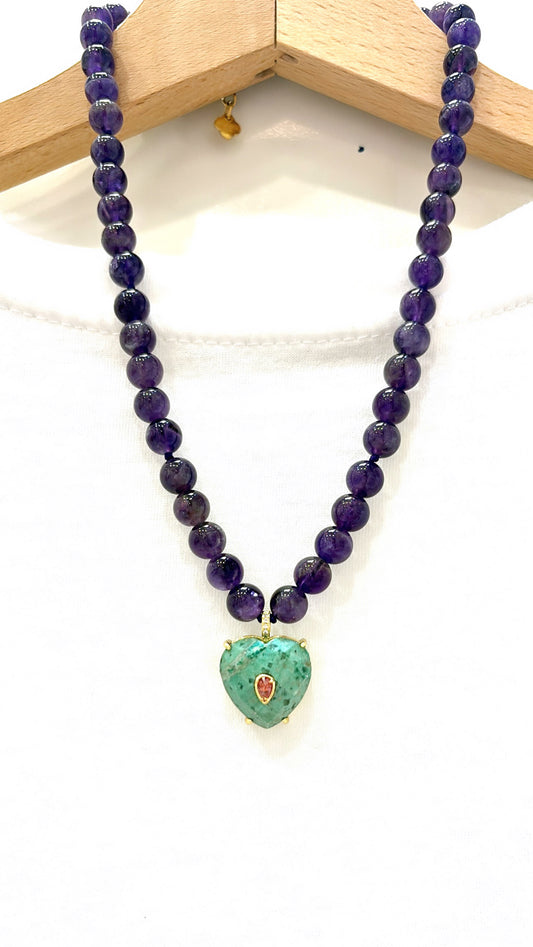 Collier Passion Amethyste et Chrysoprase