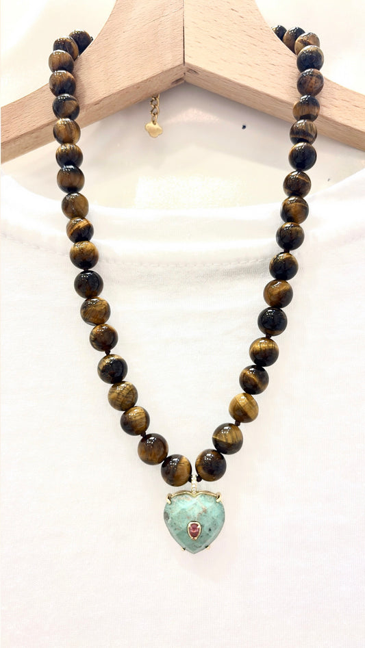 Collier Passion Œil de Tigre et Chrysoprase