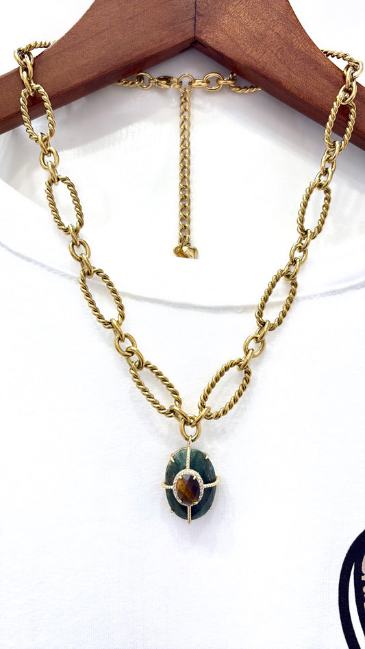 Collier Chang Chrysoprase et Œil de Tigre