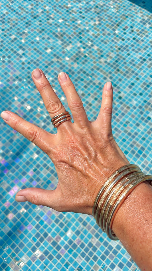 Nos bijoux sont principalement composés d'acier chirurgical et sont donc inoxydables. Certains bijoux peuvent également inclure différents matériaux comme le cuir, la céramique, les hémo, le cuivre, le zircon et évidemment les pierres naturelles.