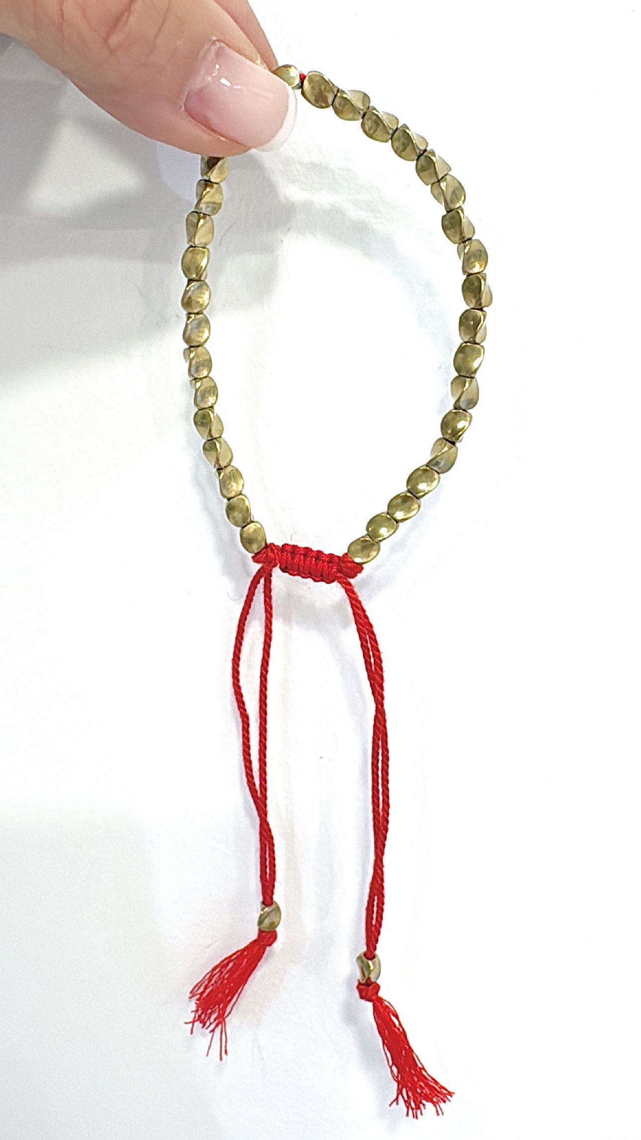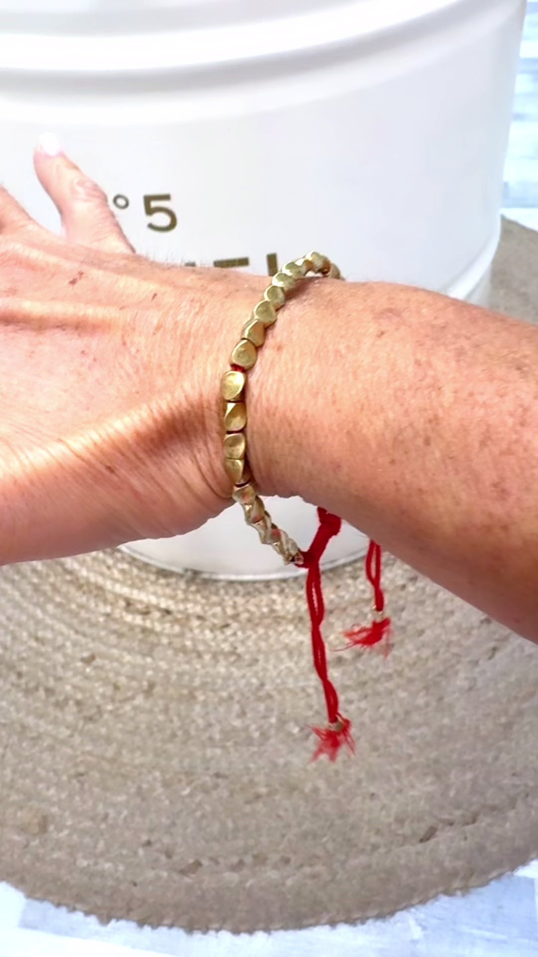 Le bracelet Ayu Sai unit le cuivre protecteur au fil rouge porte-bonheur thaï, pour attirer la bienveillance, la paix et éloigner les énergies négatives.