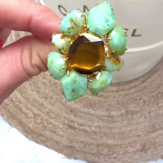 Bague Majestueuse Chrysoprase et Œil de tigre