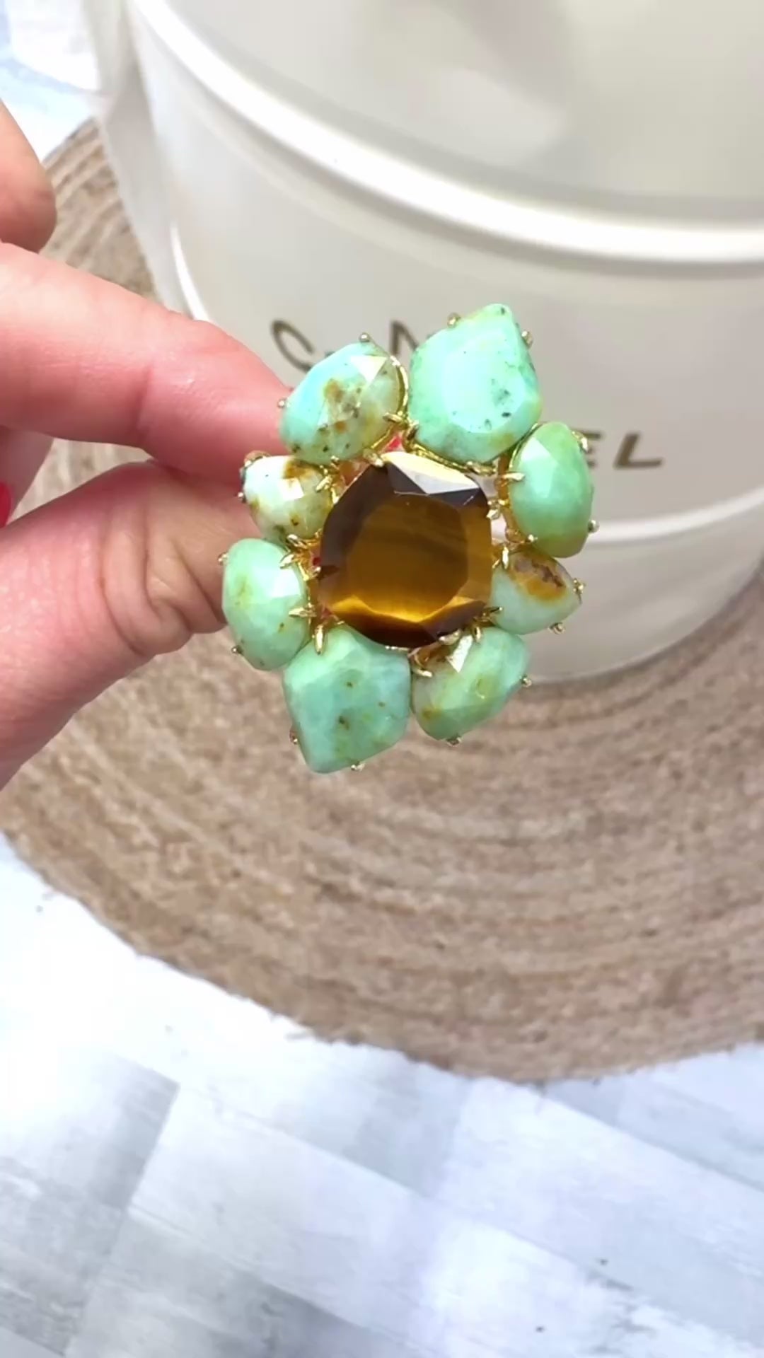 Bague Habaha en véritable Chrysoprase et Œil de Tigre
