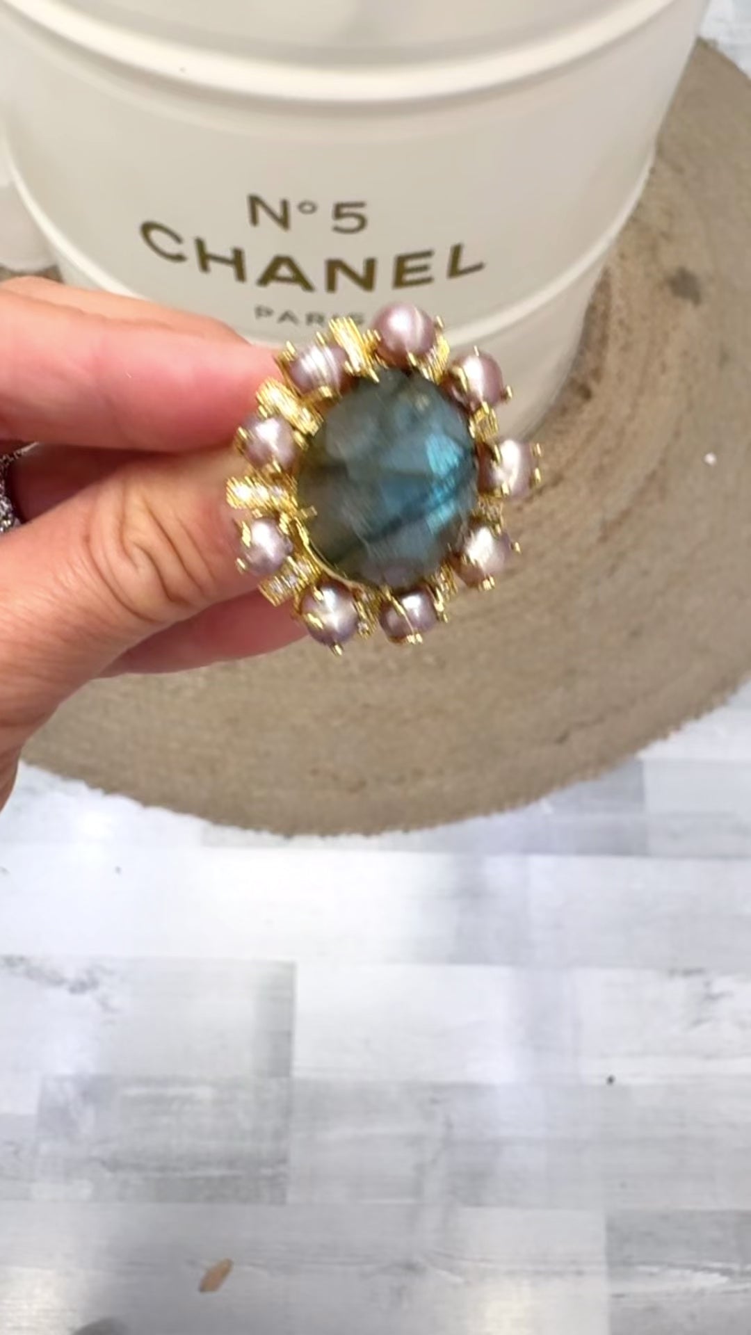 Bague Habaha en véritable Labradorite et perles d’eau douce violacées