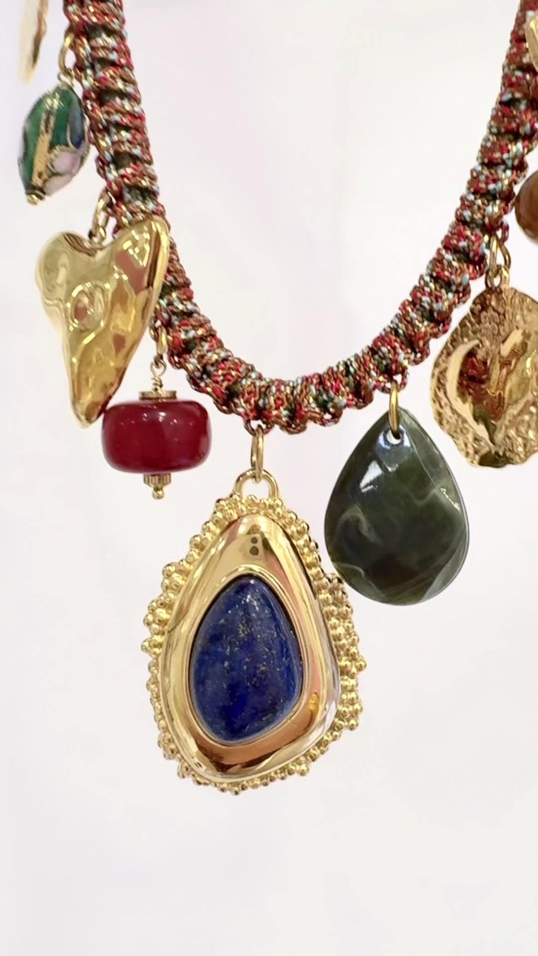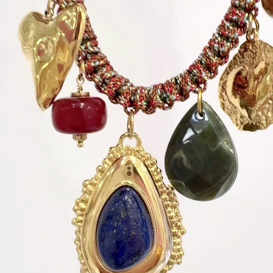 Collier Habaha cordon tressé, pampilles et véritable Lapis-lazuli