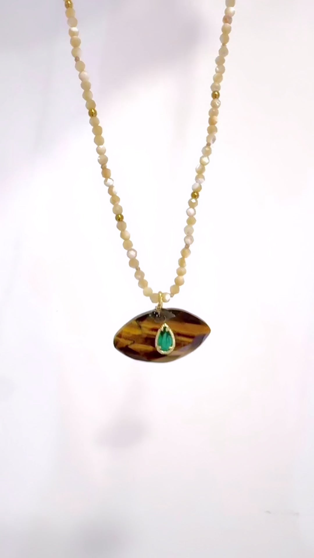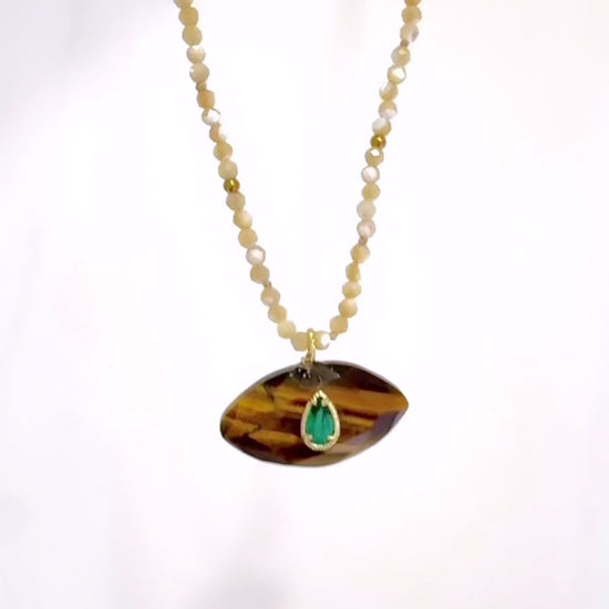 Collier Habaha en véritable nacre, œil de tigre et malachite