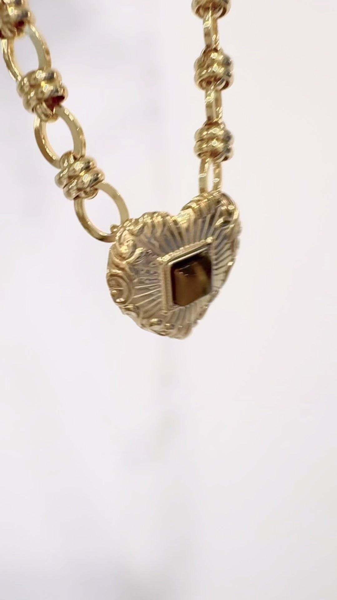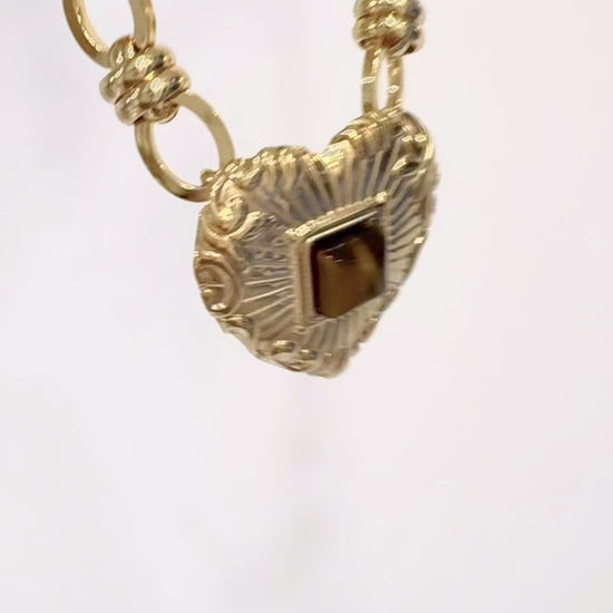 Collier Habaha grosse maille pendentif coeur en véritable Œil de Tigre