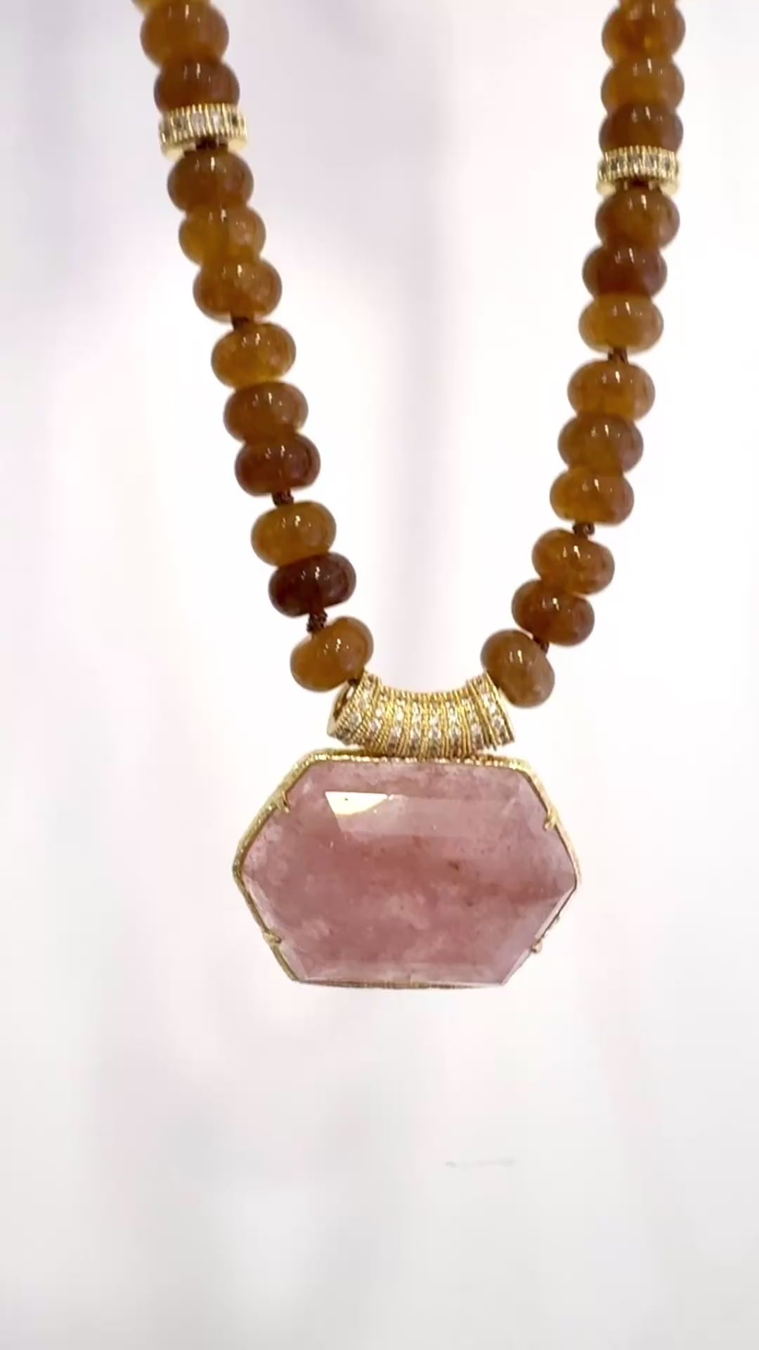 Collier Habaha en véritable Agate et Quartz Fraise