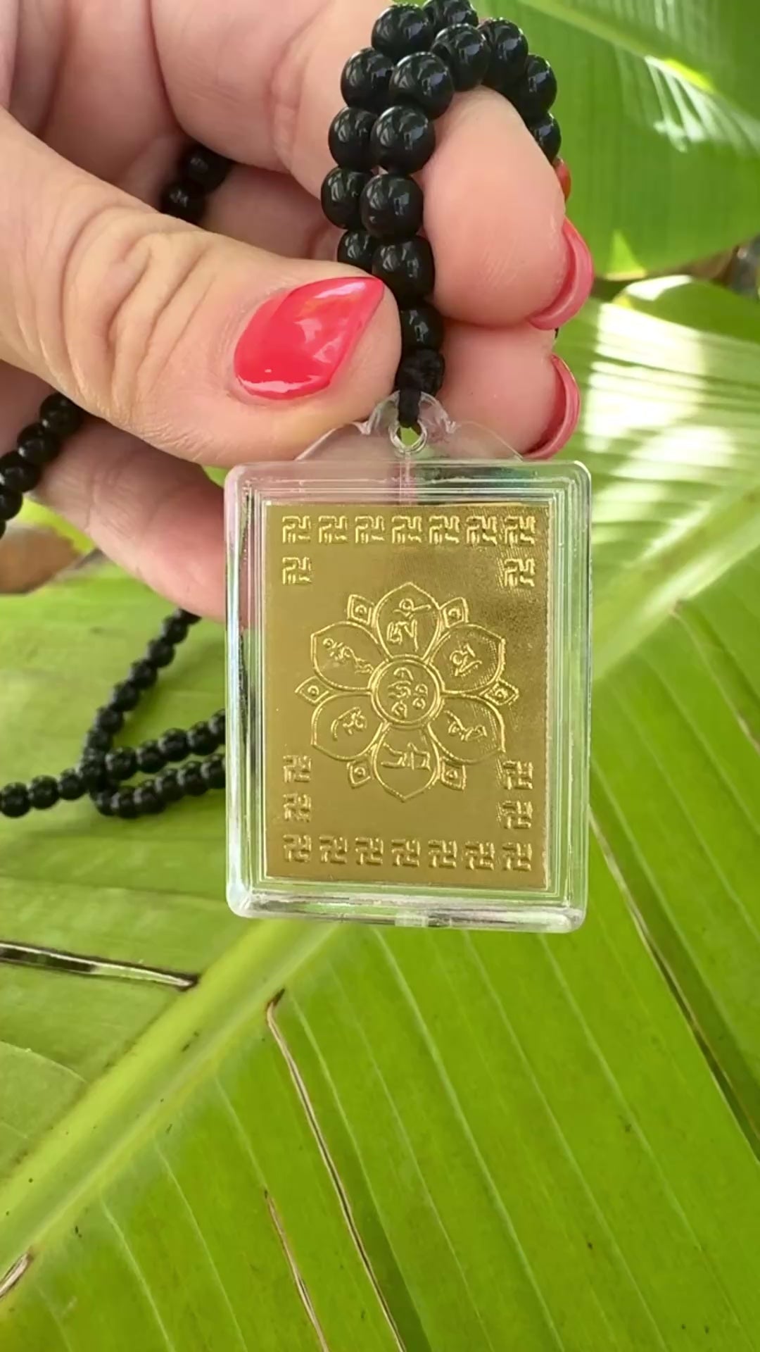 Ses perles sombres évoquent la stabilité et le calme intérieur, tandis que son pendentif doré représente la lumière de la sagesse